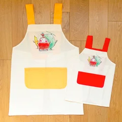 (キッズ&レディース)だるまさんと エプロン 親子セット レッド&イエロー